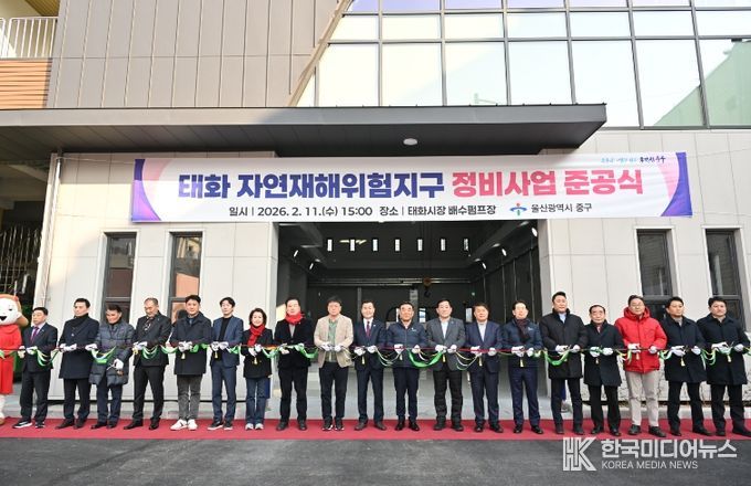 [ 한국미디어뉴스 이보영 기자 ] 울산 중구가 2월 11일 오후 3시 태화시장 배수펌프장(태화동 37-10번지)에서 ‘태화 자연재해위험개선지구 정비사업’ 태화시장 배수펌프장 준공식을 개최했다.