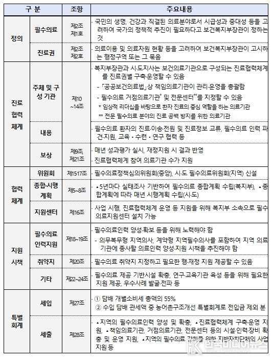지역필수의료법의 주요 내용은 다음과 같다.