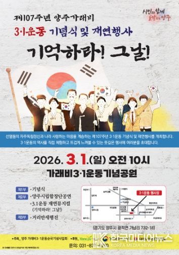양주시 관계자는 “제107주년을 맞아 열리는 이번 기념 행사가 선열들의 희생과 애국정신을 다시 한번 마음에 새기는 계기가 되길 바란다”며 “많은 시민들이 함께해 자랑스러운 우리 고장의 역사를 기억하고, 그 정신을 미래 세대에 이어가는 소중한 시간이 되길 기대한다”고 전했다.