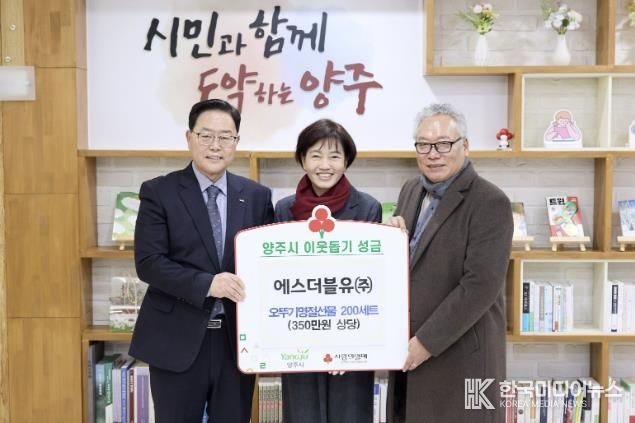 양주시 관계자는 “지난해에 이어 꾸준히 나눔을 실천해 주신 에스더블유㈜에 깊이 감사드린다”며 “기탁해 주신 성품은 어려운 이웃들에게 잘 전달해 일상에 보탬이 되도록 하겠다”고 전했다.