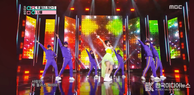 [ 한국미디어뉴스 이원영 기자 ] K-POP 트로트 아티스트 나율이 MBC 음악 프로그램 ‘쇼! 음악중심’을 통해 신곡 ‘투플러스원(2+1)’ 무대를 최초 공개하며 본격적인 활동에 나섰다.