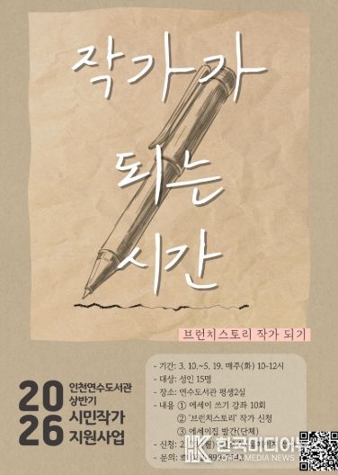 [ 한국미디어뉴스 이원영 기자 ] 인천광역시교육청연수도서관은 인천시민을 대상으로 예비작가 지원 프로그램 ‘작가가 되는 시간’ 참여자를 모집한다.