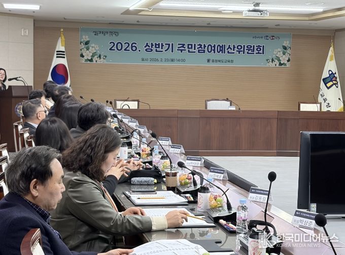 [ 한국미디어뉴스 김풍옥 기자 ] 충청북도교육청은 23일, 충북교육청 행복관에서 교육재정 운영의 투명성과 민주성을 높이기 위한 '2026년도 상반기 주민참여예산위원회'를 개최했다.