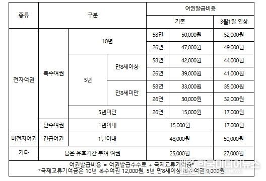 [ 한국미디어뉴스 이원영 기자 ] 2026년 3월 1일부터 여권발급수수료가 2천원 인상된다.