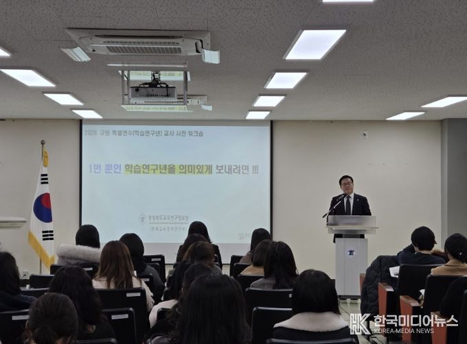 [ 한국미디어뉴스 김풍옥 기자 ] 충청북도교육청 직속기관 교육연구정보원은 24일 교육연구정보원 세미나실에서 교원 특별연수(학습연구년)의 운영 기준을 안내하고 연수를 지원하기 위해 '2026학년도 교원 특별연수(학습연구년) 사전 워크숍'을 개최했다고 밝혔다.