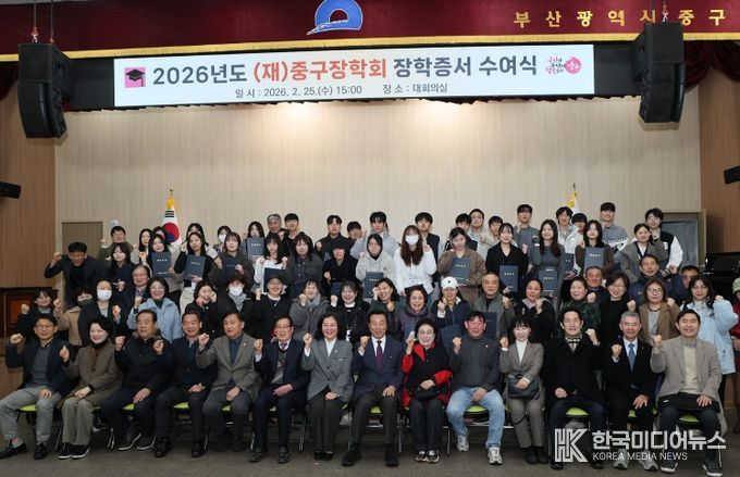 [ 한국미디어뉴스 이원영 기자 ] 재단법인 중구장학회(이사장 김현진)는 지난 25일 중구청 대회의실에서‘2026년도 장학증서 수여식’을 개최했다.
