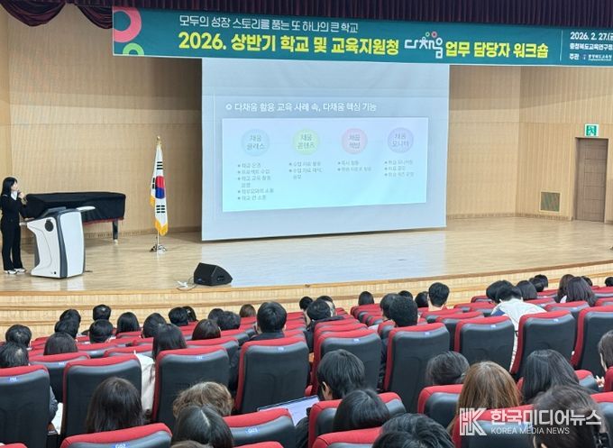 [ 한국미디어뉴스 김풍옥 기자 ] 충청북도교육청은 27일, 교육연구정보원 시청각실에서 학교 및 교육지원청 다채움 업무 담당자 450여 명을 대상으로 〈2026. 상반기 다채움 업무 담당자 워크숍'을 실시했다고 밝혔다.