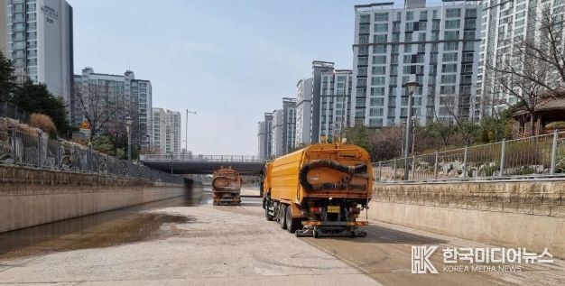 오는 3월 3일부터 3월 27일까지 겨울철 동안 유입된 쓰레기, 낙엽 등 각종 오염원을 제거하고 담수 전 벽면 살수 청소와 노면청소차를 활용한 바닥면 청소를 추진한다. 또한, 파손된 벽면 판석과 LED 경관조명의 보수, 벽면 코킹 보수도 청소 기간 중 병행할 계획이다.