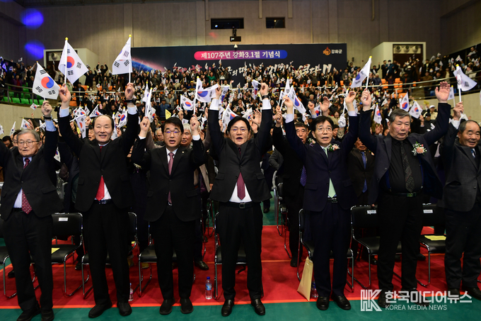 강화군(군수 박용철)이 제107주년 삼일절을 맞아 개최한 기념행사를 독립유공자와 군민 등 1,000여 명이 문예회관 대강당을 가득 메운 가운데 성황리에 마쳤다.