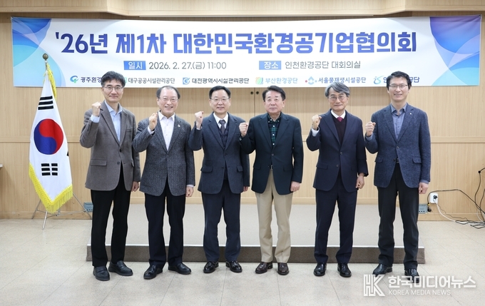 [ 한국미디어뉴스 이원영 기자 ] 인천환경공단(이사장 김성훈)은 지난 27일 본부 대회의실에서 전국 6개 환경공기업과 함께 ‘2026년 제1회 대한민국 환경공기업협의회’ 정기회의를 개최했다.