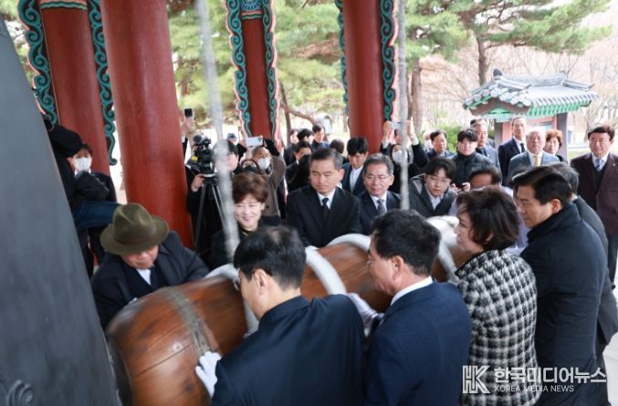 이번 달구벌대종 타종식은 3.1절을 기념하여 광복회 대구광역시지부 주관으로 개최됐으며, 시장 권한대행, 시의회 의장, 교육감, 군수·구청장, 보훈단체장, 광복회원 등 여러 인사가 참석한 가운데 타종과 만세삼창으로 뜻깊은 시간을 가졌다.