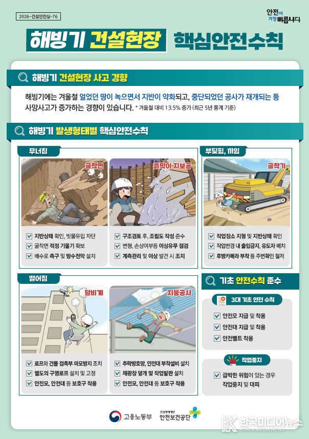 [ 한국미디어뉴스 김만길 기자 ] 고용노동부 부천지청(지청장 신동술) 3월 4일부터 3월 10일까지 관내 건설현장을 대상으로 「해빙기 안전 위험요인 현장 집중 점검주간」을 운영한다고 밝혔다.