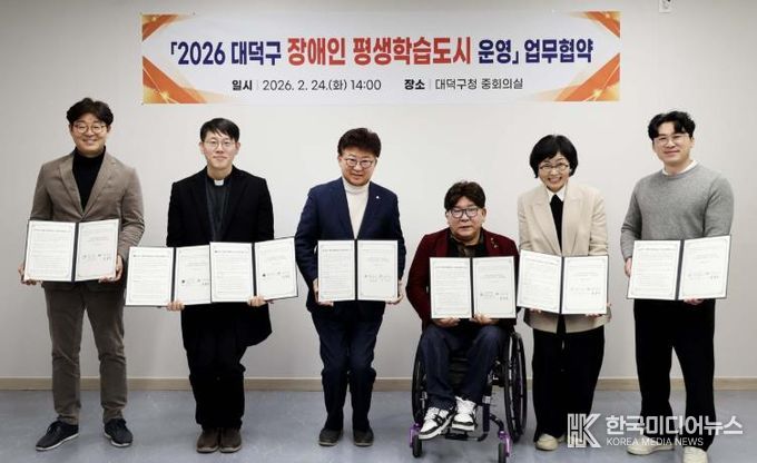 [ 한국미디어뉴스 이원영 기자 ] 대전 대덕구는 ‘2026년 장애인 평생학습도시 운영’ 사업에 선정됨에 따라 장애인 평생학습도시의 기반 구축과 지역 네트워크 조성을 위한 업무협약을 체결했다.