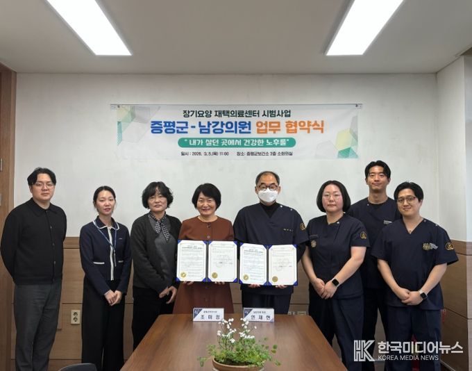 [ 한국미디어뉴스 김풍옥 기자 ] 충북 증평군보건소는 5일 보건소에서 남강의원(원장 연재현)과 ‘장기요양 재택의료센터 시범사업 협약’을 체결했다고 밝혔다.