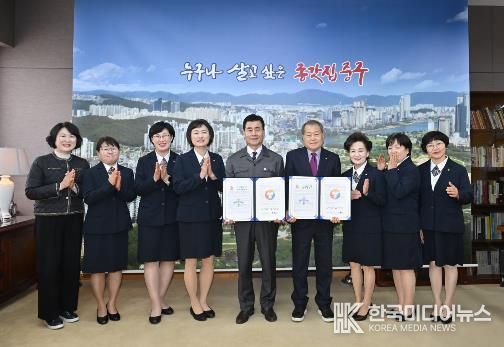 [ 한국미디어뉴스 이보영 기자 ] 울산 중구와 울산안전생활실천시민연합이 3월 5일 오후 2시 중구청 구청장실에서 ‘안전취약계층 시민생활안전교육’ 운영을 위한 업무협약을 맺었다.