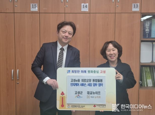 [ 한국미디어뉴스 이원영 기자 ] 평화 경제 거점 도시 강원 고성군은 3월 5일, 대교뉴이프(대표 김경호)와 ‘고성e음 인지케어 서비스’ 추진을 위한 업무 협약을 체결했다고 밝혔다.