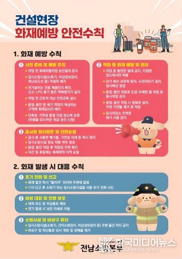신향식 나주서장은 “공사장은 다양한 공정이 동시에 진행하는 특성상 작은 부주의로도 화재가 발생할 수 있기에 철저한 안전관리로 안전한 작업환경 조성에 적극 동참해 주기를 바란다”고 말했다.