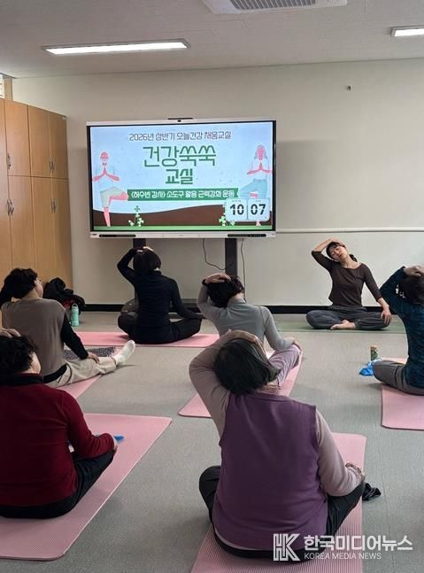 ‘건강쑥쑥교실’은 근력 강화 운동 프로그램으로 일상생활에 필요한 기초 체력 증진에 초점을 맞추고 있다. 전문 강사가 소도구를 활용해 안전하면서도 효율적인 운동을 진행한다.