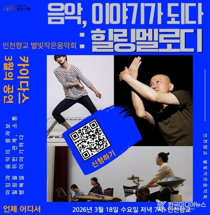 [ 한국미디어뉴스 최치남 기자 ] 인천 미추홀구는 오는 18일 인천향교 명륜당 및 야외마당에서 ‘2026 인천향교 별빛 작은 음악회’의 첫 공연을 개최하고, 참가자를 모집한다고 밝혔다.