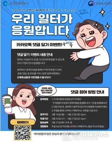 [ 한국미디어뉴스 이원영 기자 ] 인천여성가족재단 인천광역새일센터는 2026년 경력단절예방주간(3월 셋째주)를 맞아 3월 16일부터 22일까지 “우리 일터가 응원합니다.” SNS 댓글 달기를 개최한다.