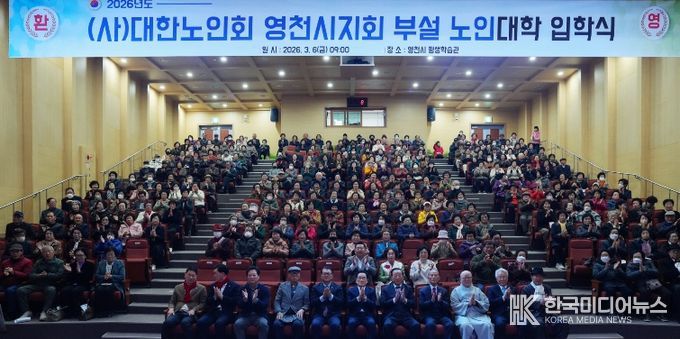 [ 한국미디어뉴스 이보영 기자 ] 영천시는 대한노인회 영천시지회 부설 노인대학이 6일 평생학습관 우석홀에서 노인대학생, 기관단체장 등 350여 명이 참석한 가운데 ‘제31기 입학식’을 개최했다고 밝혔다.