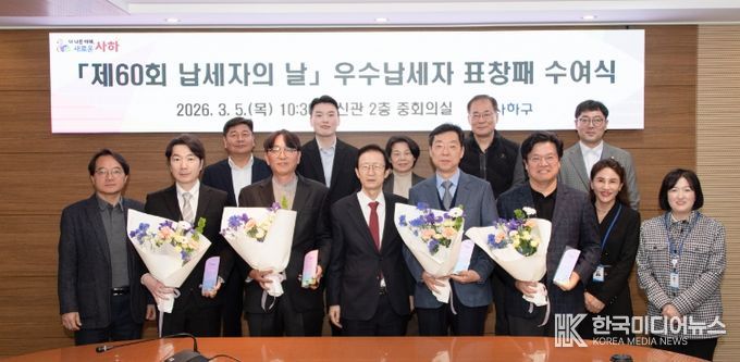[ 한국미디어뉴스 이원영 기자 ] 부산 사하구는 ‘제60회 납세자의 날’을 맞아 지난 5일 '2026년 사하구 우수납세자 표창패 수여식'을 개최하여 어려운 여건에서도 성실하게 지방세를 납부한 우수납세자에게 감사의 마음을 전했다.