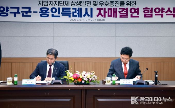 [ 한국미디어뉴스 김일규 기자 ] 용인특례시는 6일 강원특별자치도 양구군과 자매결연을 하고, 두 도시의 교류와 발전을 위해 적극 협력하기로 했다.