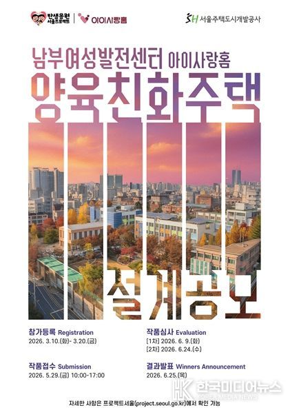 이와 관련해 사업시행자인 서울주택도시개발공사(SH)는 ‘양육친화주택 아이사랑홈’ 2호의 창의적인 설계안 마련을 위한 설계공모를 실시한다. 설계공모는 서울시 설계공모 누리집에서 오는 10일 공고되며, 3월 20일까지 참가등록을 받는다.
