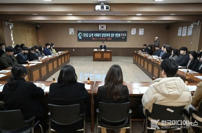 홍성군은 지난 11일 군청 회의실에서 읍·면 사회복지 담당 공무원들의 역량 강화와 역할 제고를 위한 ‘2026 읍·면 사회복지 업무 연찬회 및 토론회’를 개최했다.