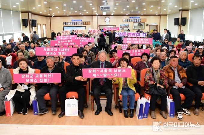 [ 한국미디어뉴스 이원희 기자 ] 강화군이 중점적으로 추진하고 있는 ‘강화~서울역 M버스(광역급행버스)’ 신설을 향한 군민들의 염원이 세대를 넘어 뜨겁게 확산되고 있다.