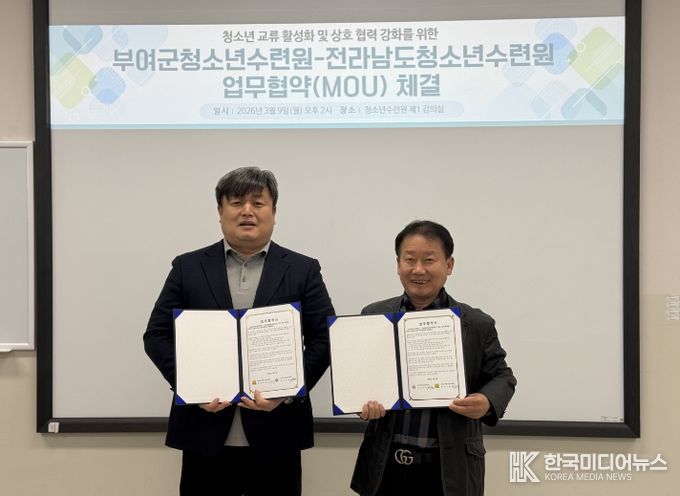 [ 한국미디어뉴스 이종철 기자 ] 전라남도청소년수련원(원장 이춘복)은 부여군청소년수련원과 상호 교류 및 협력 강화를 위한 업무협약(MOU)을 체결했다고 밝혔다.