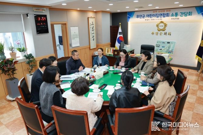[ 한국미디어뉴스 이종철 기자 ] 무안군의회는 12일 의장실에서 무안군어린이집연합회(회장 신경옥) 임원진과 무안읍 내 어린이집 원장 등이 참석한 가운데 소통 간담회를 개최했다.