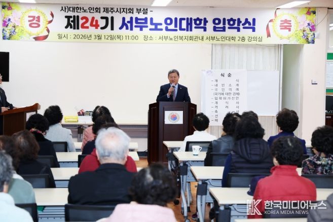 [ 한국미디어뉴스 이원영 기자 ] 김완근 제주시장은 3월 12일 서부노인복지회관에서 열린 제24기 제주시서부노인대학 입학식에 참석해 어르신들에게 축하와 존경의 마음을 전했다.