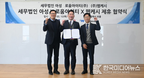 [ 한국미디어뉴스 이원영 기자 ] 2026년 3월 13일 -- B2B 금융 AI 에이전트 기업 웹케시(대표 강원주)와 세무 IT 솔루션 기업 로움아이티(대표 박승현)가 세무법인 아성(대표 세무사 한준영)과 세무업계 디지털 전환을 위한 전략적 업무제휴를 체결했다고 13일 밝혔다.