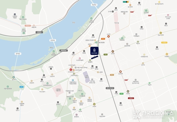 단지는 반포역·잠원역·고속터미널역을 도보로 이용할 수 있는 트리플 역세권 입지에 위치해 있다. 또한 경부고속도로 잠원IC와 반포IC 접근성도 우수하다. 인근에 신세계백화점과 센트럴시티 등 상업시설, 서울성모병원 등이 위치하며 한강공원 접근성도 뛰어나다.