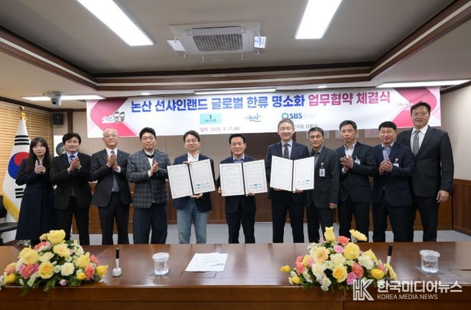 논산시는 17일 ㈜SBS A&T, 드라마 제작사 ㈜낭만크루와 ‘선샤인랜드 글로벌 한류 명소화를 위한 업무협약’을 체결했다고 밝혔다.