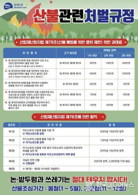 반승영 군 산림보호팀장은 “아무리 작은 불씨라도 건조한 날씨와 강풍을 만나면 걷잡을 수 없는 대형 산불로 번질 수 있다”며 “과실이나 실수로 발생한 산불도 명백한 범죄 행위가 될 수 있는 만큼, 군민들께서는 산림 인접 지역에서 절대 불을 피우지 말아 달라”고 당부했다.
