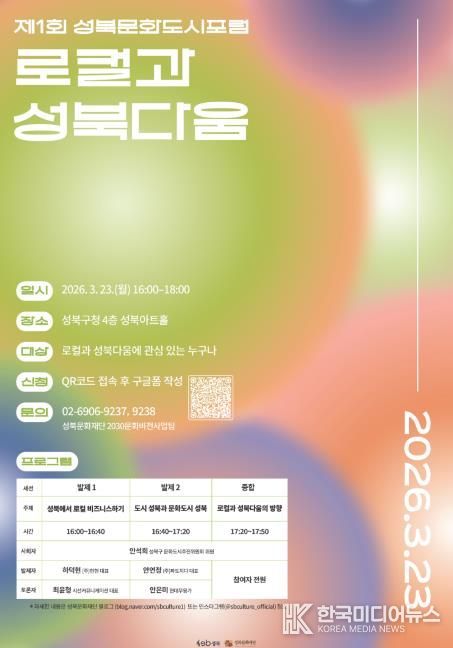 [ 한국미디어뉴스 이보영 기자 ] 서울 성북구가 성북구 2030 문화비전 정책사업의 일환으로 오는 3월 23일 제1회 성북 문화도시 포럼 ‘로컬과 성북다움’을 개최한다.