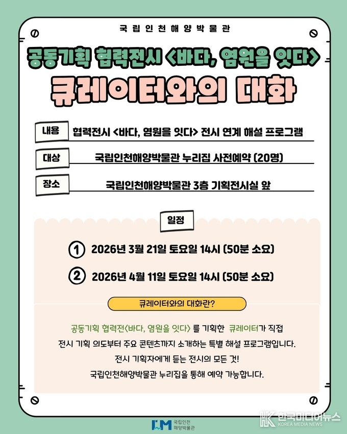 행사는 국립인천해양박물관 3층 기획전시실에서 진행되며, 박물관 누리집에서 사전 예약 가능하다. 자세한 내용은 국립인천해양박물관 공식 누리집에서 확인할 수 있다.