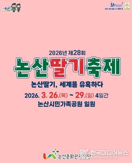 올해 28회를 맞는 논산딸기축제는 달콤한 딸기의 맛과 다채로운 경험, 풍성한 볼거리가 어우러진 봄 대표 축제로 방문객들을 맞이할 준비를 마쳤다. 이번 축제가 논산딸기의 세계적인 경쟁력과 산업적 가치를 널리 알리는 무대가 될 것으로 기대를 모으고 있다.