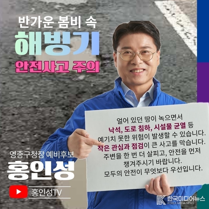 홍인성 예비후보는 “얼어 있던 땅이 녹으면서 낙석, 도로 침하, 시설물 균열 등 위험이 발생할 수 있다”며, “주변 점검과 관심이 안전사고 예방에 중요하다”고 말했다.