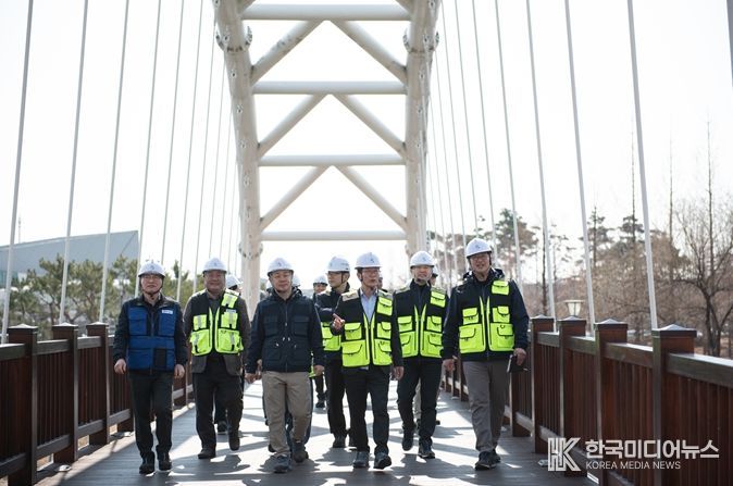 김재보 이사장을 비롯한 합동 점검반은 사업장 내 시민들의 이용이 잦고 해빙기 취약 시설로 꼽히는 구역들을 비롯하여 ▲교량 구조 이상 여부 ▲야외 운동기구 상태 점검 ▲지반 침하·붕괴 우려 옹벽 및 경사면을 집중적으로 점검했다.