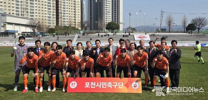[ 한국미디어뉴스 김서안 기자 ] 포천시는 포천시민축구단이 지난 22일 열린 2026 케이(K)3리그 홈 개막전에서 경주한수원축구단을 2대1로 제압하며 값진 승리를 거뒀다고 밝혔다.