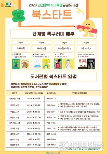 [ 한국미디어뉴스 이원영 기자 ] 인천광역시교육청 공공도서관과 평생학습관은 영유아 및 초등 1·2학년 학생을 대상으로 ‘2026년 북스타트 사업’을 시작한다.