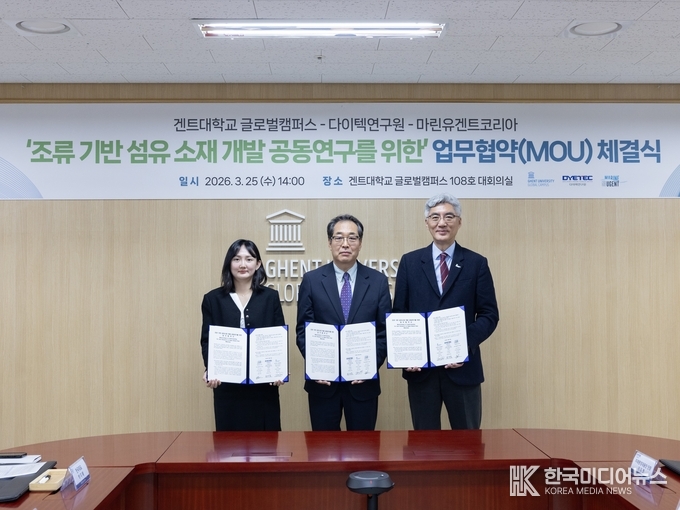 한태준 겐트대 글로벌캠퍼스 총장은 협약에 대해 “지속 가능한 미래를 위한 해양·바이오 섬유 소재 개발의 출발점”이라며 세 기관이 상호 신뢰와 협력으로 실질적 성과를 내기 위해 노력하겠다고 밝혔다.