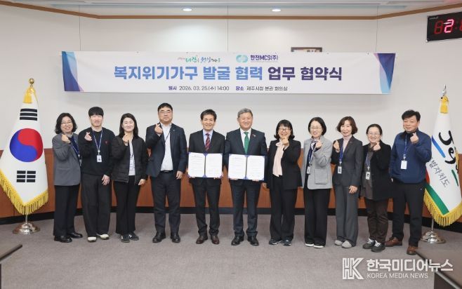[ 한국미디어뉴스 이원영 기자 ] 제주시는 3월 25일 시청 본관 회의실에서 한전MCS 제주지사(지사장 황성태)와 ‘복지위기가구 발굴 협력’ 업무 협약을 체결했다.