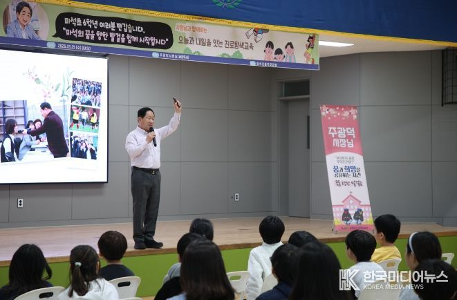 주광덕 시장은 “천상천하 유아독존”, “너희는 세상의 빛이라”라는 메시지를 통해 학생 한 명 한 명의 소중함을 강조하며, 자신을 존중하는 태도가 꿈을 향한 출발점임을 설명했다.