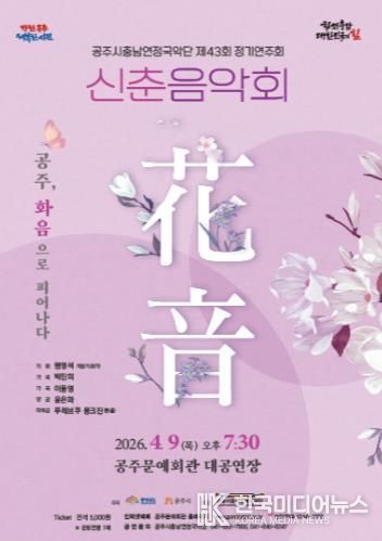 [ 한국미디어뉴스 이원영 기자 ] 공주시충남연정국악단은 오는 4월 9일 오후 7시 30분 공주시문예회관 대공연장에서 제43회 정기연주회를 개최한다.
