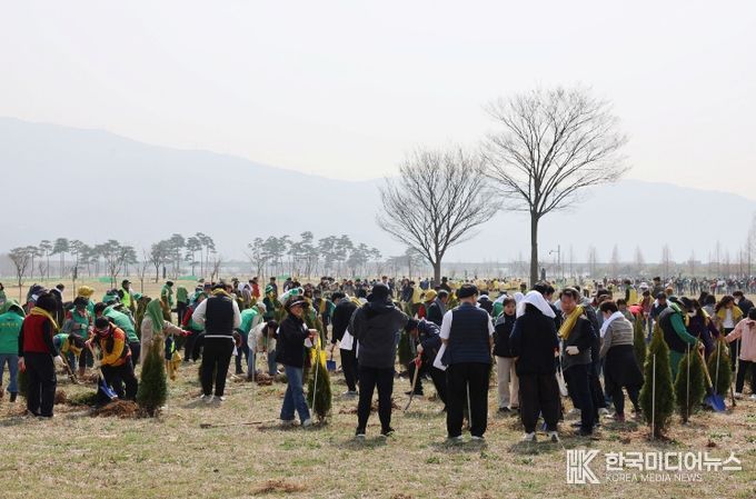 이날 참가자들은 황산공원에서 이팝나무 외 4종, 총 1,500주를 심으며 도심 속 녹지 확충과 탄소중립 실천의 의미를 나눴다. 아울러 ‘내 나무 갖기 행사(친환경화분 1,500개)와 삼색 소원지 달기’ 등 시민 체험 프로그램도 함께 운영해 식목일의 의미를 보다 쉽고 친근하게 공감할 수 있도록 했다.