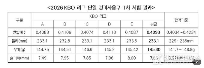 [ 한국미디어뉴스 이원영 기자 ] KBO는 3월 30일(월) 2026 신한 SOL KBO 리그 단일 경기사용구의 1차 수시검사 결과를 발표했다.